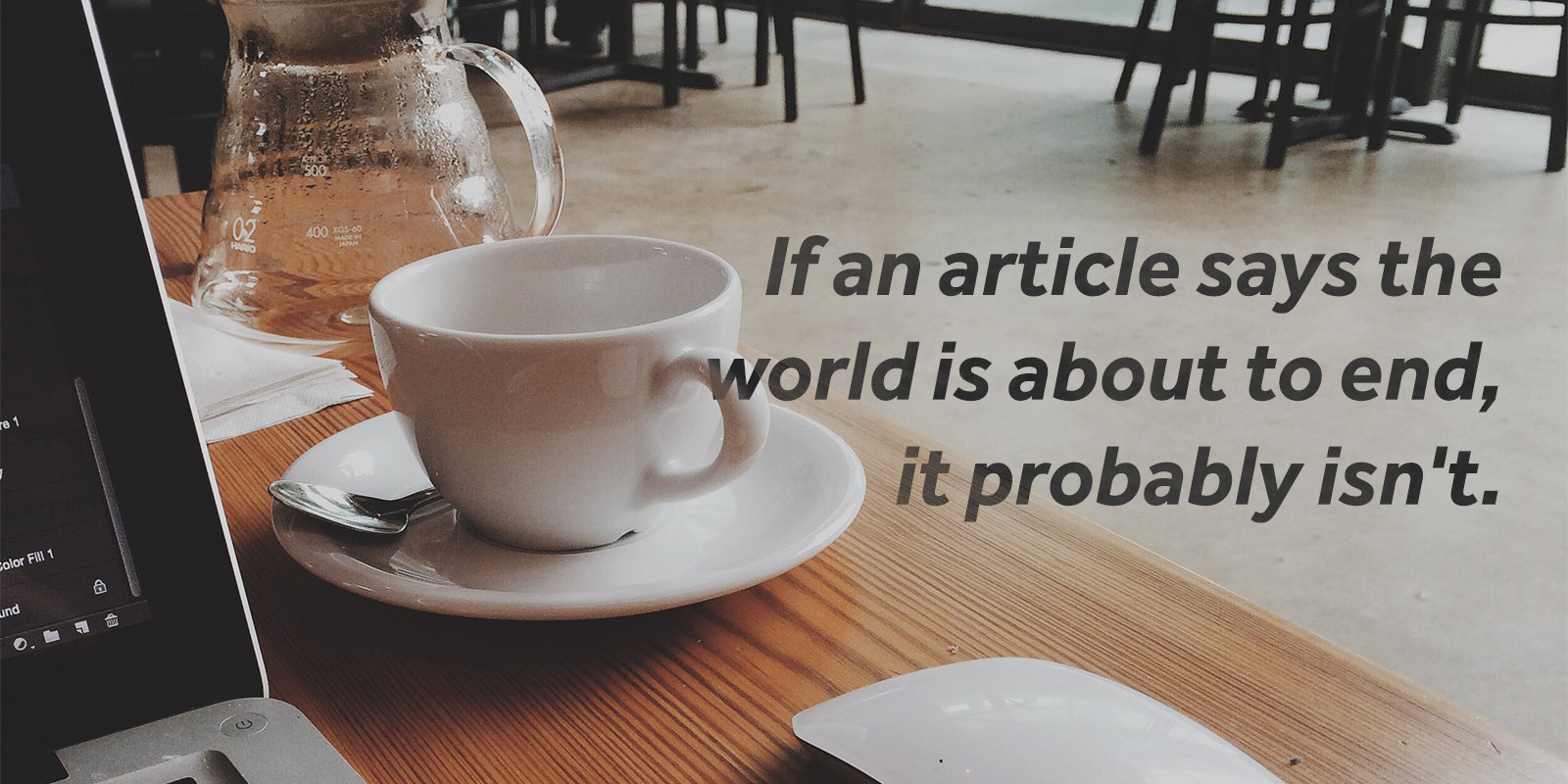 If an article says the world is about to end, it probably isn’t. They probably just want your click. Remember when eating bacon was going to guarantee you cancer? It turns out, they miscalculated the statistic. It wasn’t actually that big of a deal.