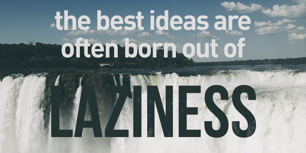 I think the best ideas are often born out of laziness. Perhaps not laziness, but definitely a way to solve a problem without exerting a ton of emotional and physical energy.