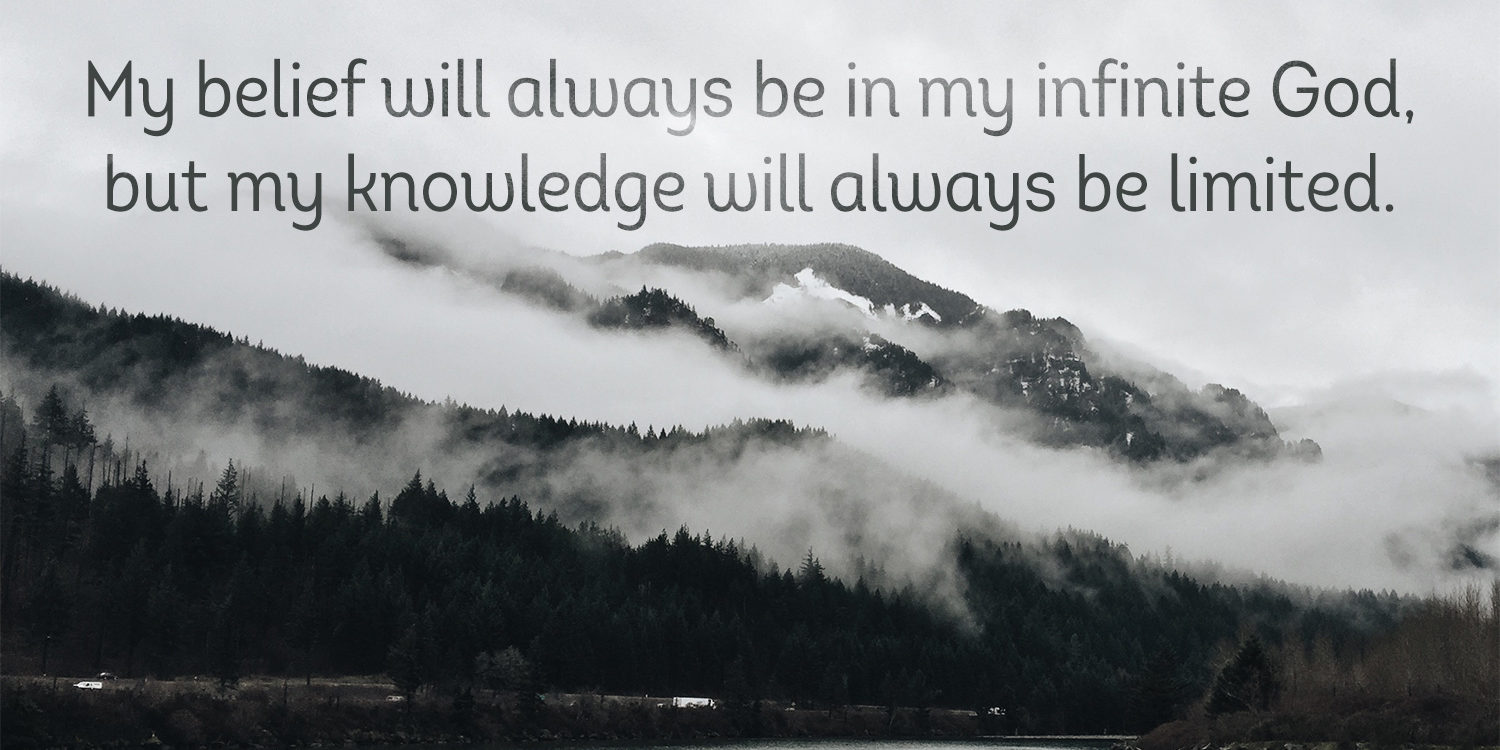 I’m not espousing agnosticism. I’m espousing intellectual honesty. My belief will always be in my infinite God, but my knowledge will always be limited. I want to quickly admit that.