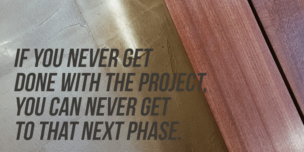 That’s what’s required of good work. Work. And sometimes you don’t consider it good work while you’re doing it. But that’s what editing’s for. That’s what reworking is for. But if you never get done with the project, you can never get to that next phase.