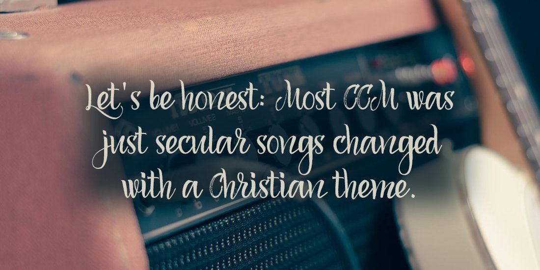 Let’s be honest: Most of Contemporary Christian Music (CCM) back in the day was just songs that copied secular songs and added a Christian theme to it. I’m not saying there wasn’t artistry or validity in the music. But the Christian market mostly wanted Christian alternatives to the music they really wanted to listen to, so that’s what CCM produced.