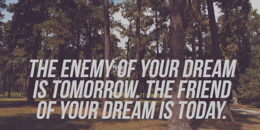 So are you neglecting your dream—assuming it will still be there tomorrow? Don’t do that. Set a deadline for your dream. Shuffle some things around in your schedule and get started today. The enemy of your dream is tomorrow. The friend of your dream is today.