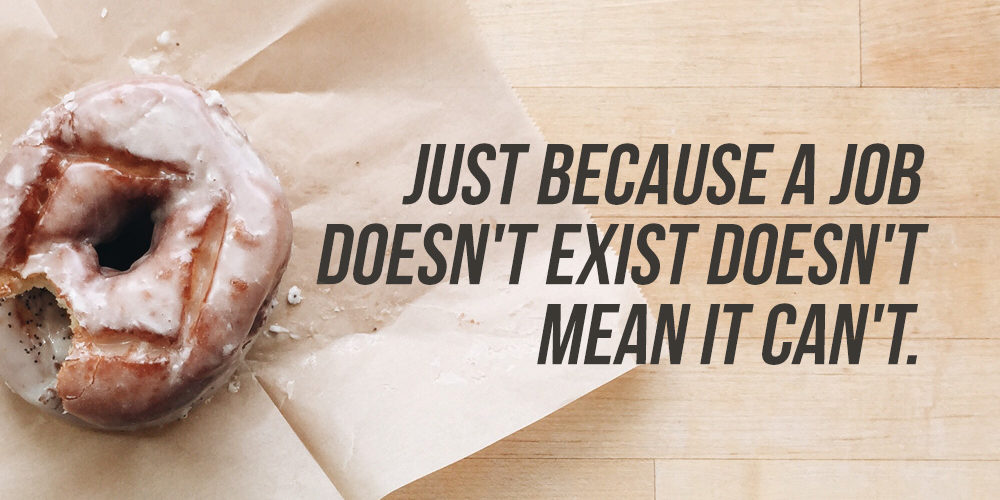 I want to encourage you to start thinking outside the box when it comes to a career for yourself. Just because a job doesn’t exist doesn’t mean it can’t.