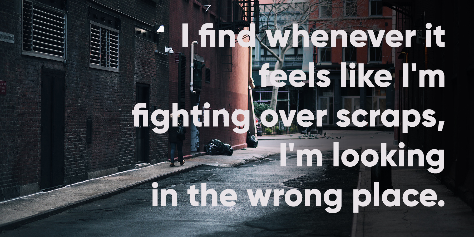 I find whenever it feels like I’m fighting over scraps, I’m looking in the wrong place.