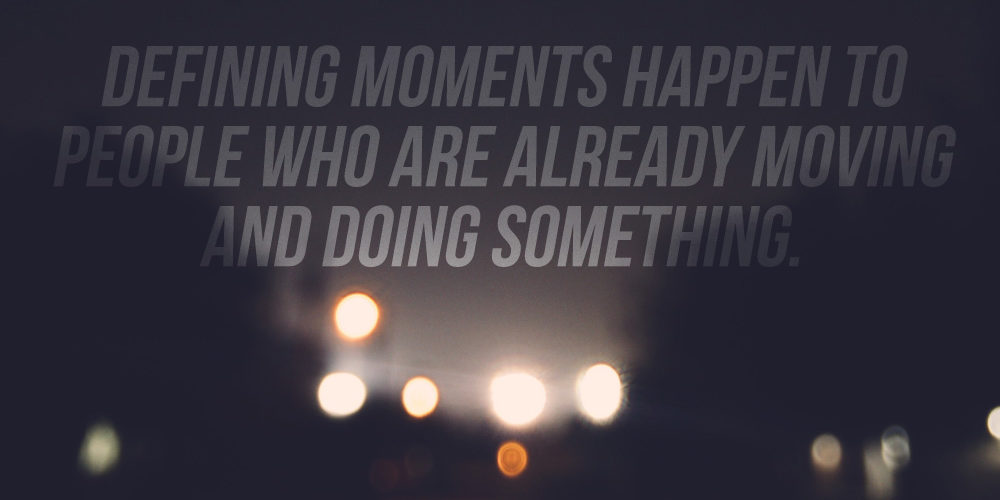 Unfortunately, these defining moments only happen to a few people. They happen to people who are already moving and doing something.