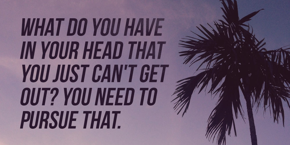 What do you have in your head that you just can’t get out? You need to pursue that.