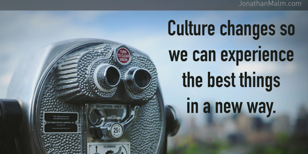 Culture changes so can experience the best things in a new way. So things can impact us emotionally. So we can experience things again for what feels like the first time.