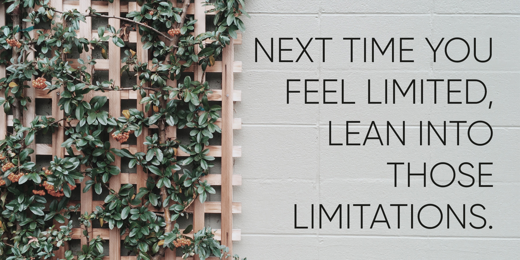 Next time you feel limited, lean into those limitations. Ask God to direct you through His lack of provision. He just might show you a brand new path, meant only for you, that leads to places you never imagined.