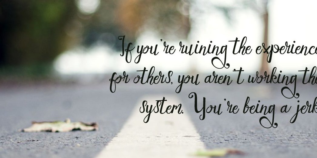 If you’re ruining the experience for others, you aren’t working the system. You’re being a jerk.