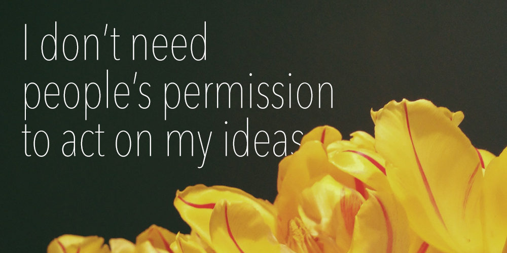 The truth is, I don’t need people’s permission to act on my ideas. I don’t need a thumbs-up before I can act on the dream in my head. But when I spend all my time defending my ideas to other people, I put myself in a position of asking permission from those people. The only permission you need to follow your dream is from the One who put it in your heart in the first place. And if He put it there, He’s given you permission to pursue it.