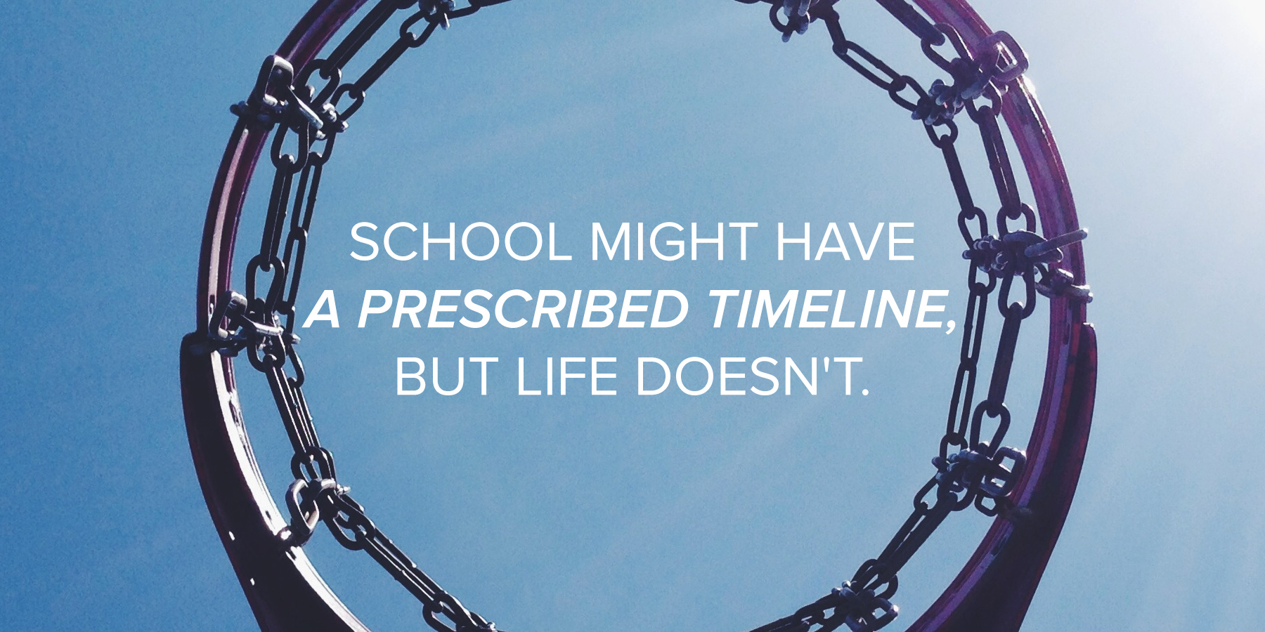 School might have a prescribed timeline, but life doesn’t. There’s no measure of success indicating you should get married at 21, buy a house at 23, have two kids by 25, and then get that massive promotion by 27. Everyone’s life, first of all, looks different. But more than that, everyone timeline looks different.