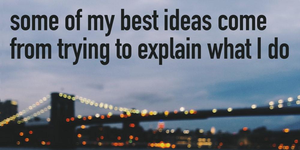 I’ve found some of my best ideas come from trying to explain what I do to people. As they try to compare it to something with which they’re familiar, they often give me great parallel ideas.